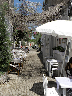 Hele o taş evler, daracık sokaklar...Bayıldık...Hele o meşhur Çatladı Kapı çarşısı ve benim bayıldığım Cıngıl cıngıl dükkanlar...Bir sürü hediyelik eşya aldık dostlarımıza, azıcıkta kendimize:)) Çoğu yerde harıl harıl inşaat çalışmaları vardı, hep aynı usul taşlardan yeni yeni binalar evler yapıyorlar...Öyle olunca da bütünlük bozulmuyor ve çok güzel bir gürüntü çıkıyor ortaya...Umarız Bodrum'un düştüğü duruma düşmez burası ve uzun yıllar korur doğallığını.
